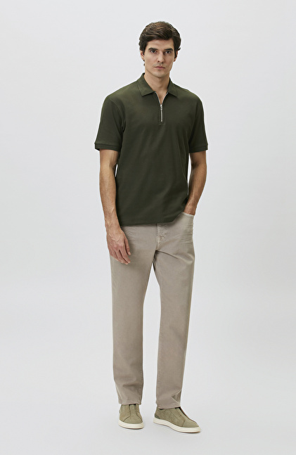 Slim Fit Khaki Polo Neck Jacquard Pique T-shirt
