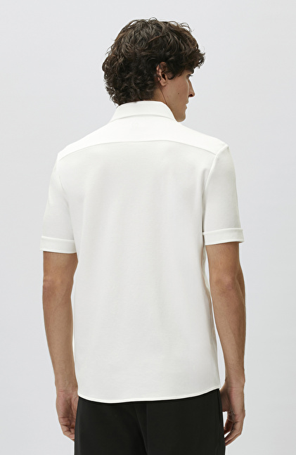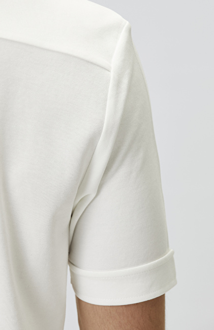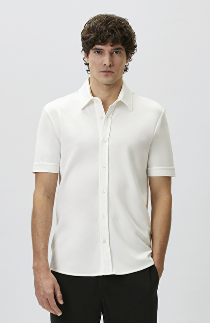 Slim Fit Off White Short Sleeve Knitted Shirt