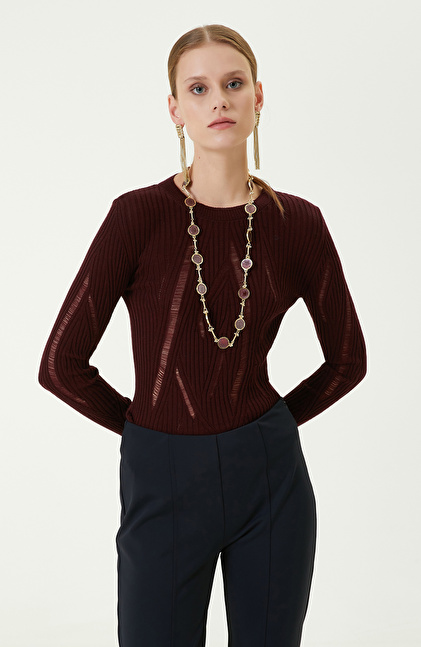Timeless lines, luxurious textures, and innovative style make NetWork a favorite among stylish women, adding a perfect touch to winter outfits with the Woolen Burgundy Crewneck Knit Sweater. The ultra-soft and flawless texture of woolen fabric is ideal for off-office days. The slim fit shape of the sweater ensures a perfect look for the body. The crewneck and long sleeve details turn the sweater into a timeless seasonal piece. The knit sweater with drop stitch details adds style and elegance to a casual winter wardrobe. You can combine the burgundy piece with navy pants, leather boots, a burgundy jacket, a shoulder bag, and gold-colored accessories for a striking style.