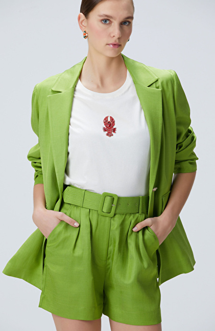 Fıstık Yeşili Keten Karışımlı Şort