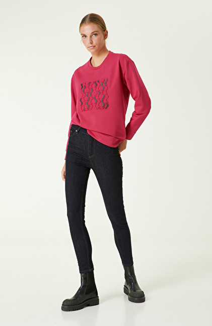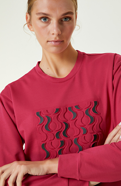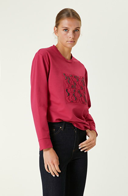 Fuşya Baskılı Sweatshirt