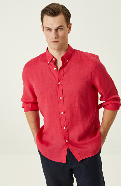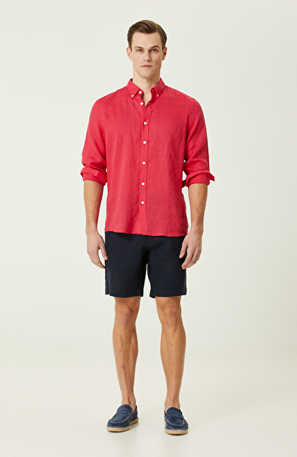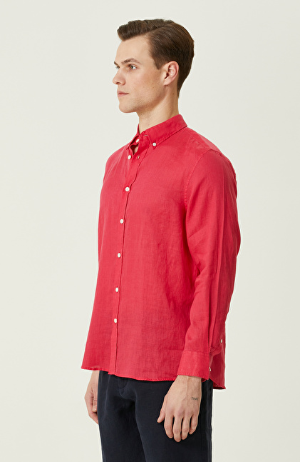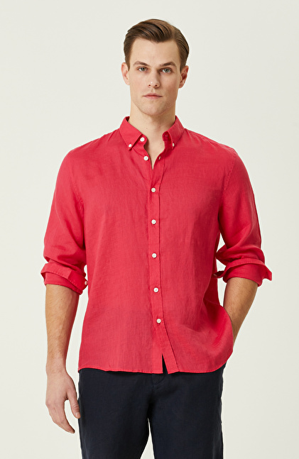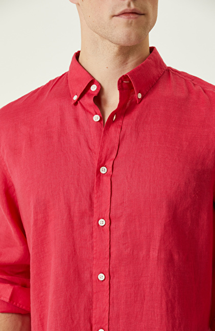 Fuşya Keten Gömlek