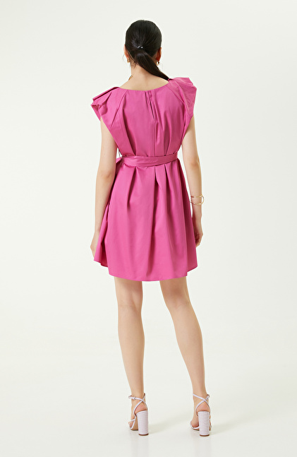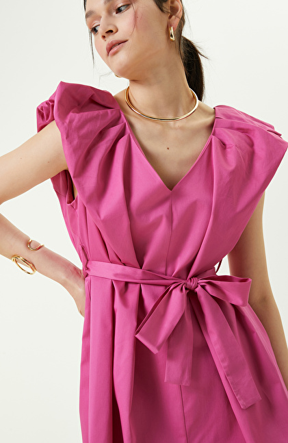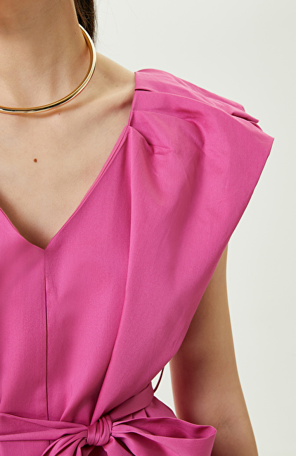 Fuşya Kolsuz V Yaka Elbise