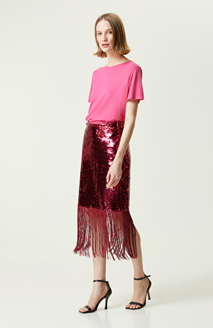 Fuşya Payetli Mini Boy Etek