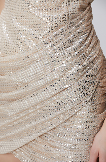 Gold Altın Rengi Payetli Mini Abiye Elbise