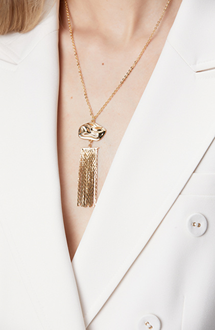 Gold Geomatrik Taşlı Kadın Uzun Kolye