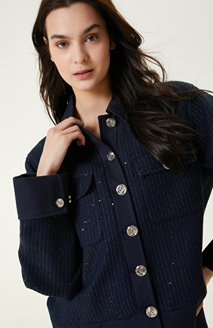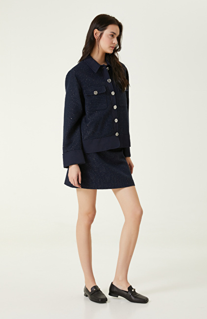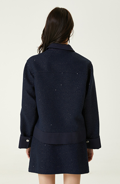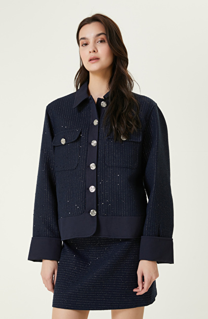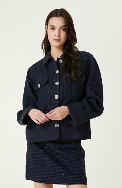 NetWork Business koleksiyonunun Line+Tone serisinde yer alan Gömlek Yaka Lacivert Ceket, sosyal ve iş hayatında her zaman şık görünmeyi tercih eden kadınlara hitap eder. Nötr ve çok yönlü renginin yanı sıra payet detayı, ceketi resmi ve yarı resmi etkinlikler için de uygun hale getirir. Uzun kol ve regular fit kalıbı sayesinde ofis kombinlerinize eşlik eder. Gömlek yaka detayı farklı bluz, gömlek ve kazak gibi üst giyim modellerine uyum sağlar. Siz de lacivert ceketi; ekru ipek gömlek, dar paça saks mavisi pantolon, vizon süet loafer, vizon el çantası ve altın renkli takılarla kombinleyebilir, business görünümünüzü NetWork stili ile oluşturabilirsiniz.