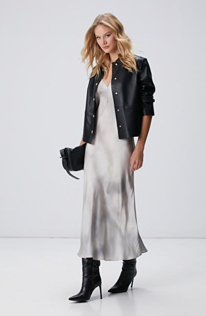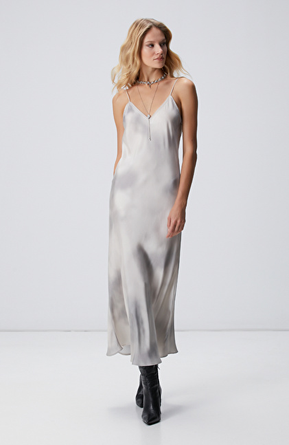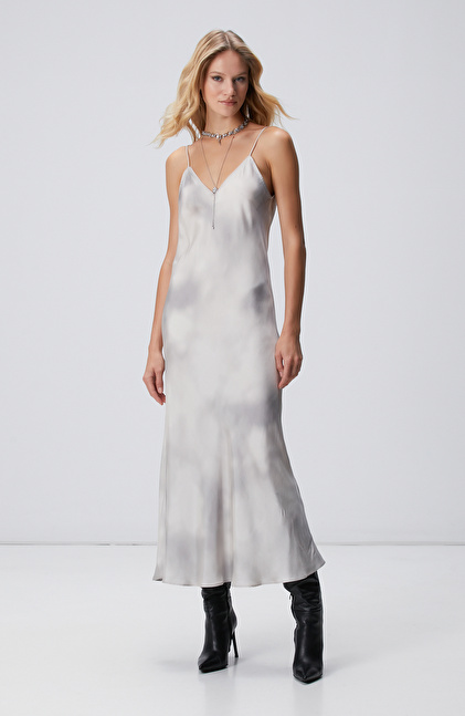 NETWORK Smart Casual Gri Batik Desenli Uzun Elbise