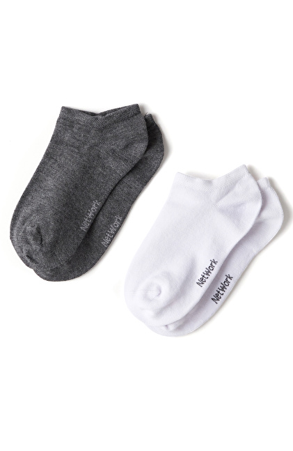 Gri Beyaz 2li Kadın Bambu Çorap Seti