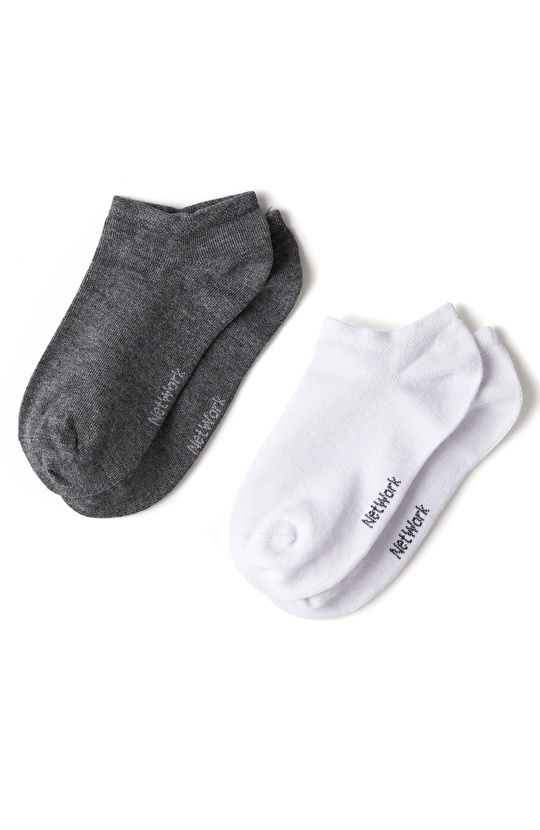 ESSENTIALS Gri Beyaz 2li Kadın Bambu Çorap Seti