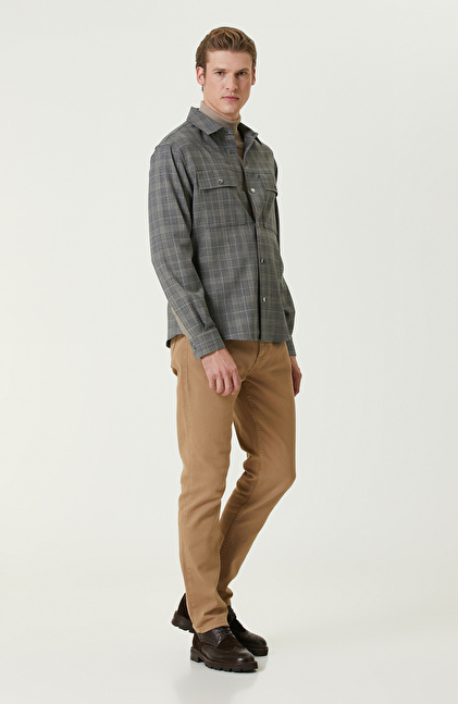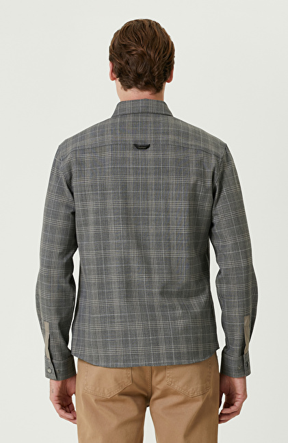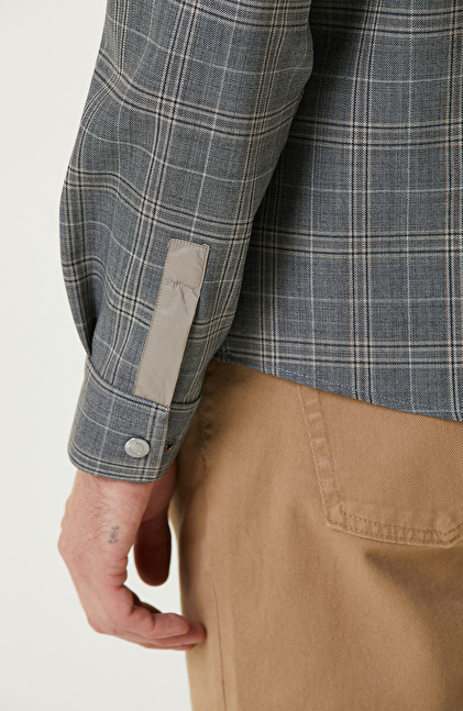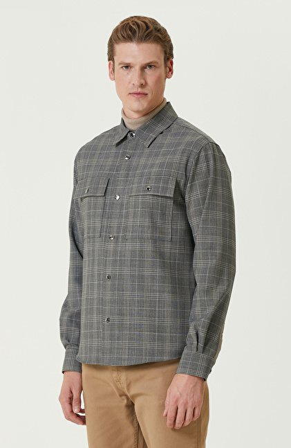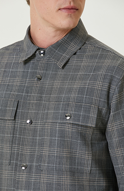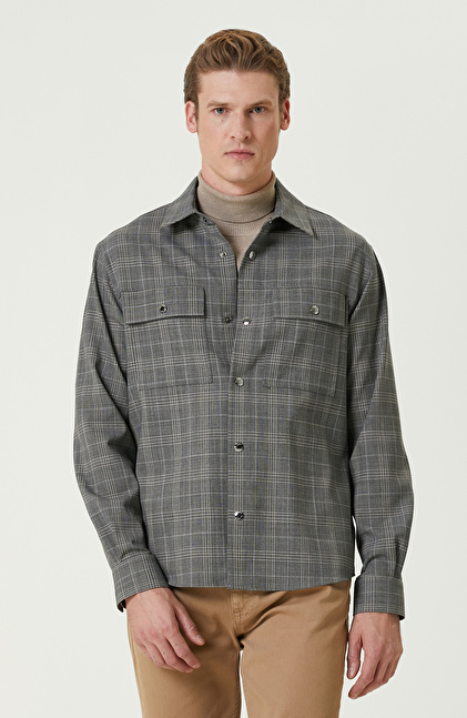 Gri Ekoseli Yün Karışımlı Dış Gömlek