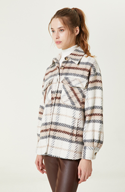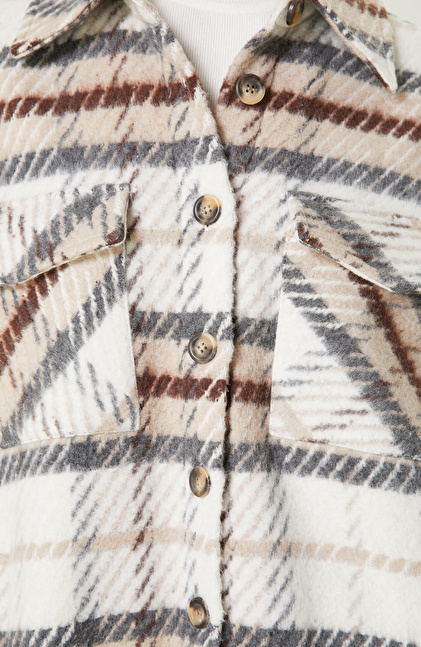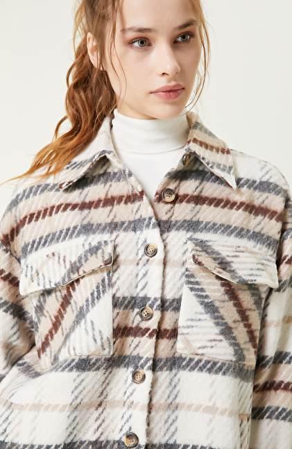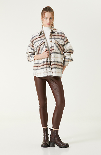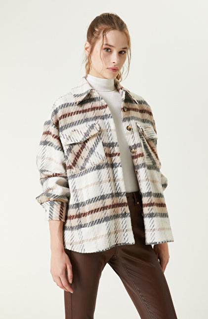 Üstün kaliteli dokusu ve sıcak tonlardaki ekose detayları ile yüksek performanslı bir giyim deneyimi sunan Gri Ekru Ekose Desenli Mont, kış sezonunun iddialı mont modelleri arasında yer alır. Oversize fit formu ile rahat bir kullanım sağlarken, şehirli kadınların yenilikçi stilini ortaya çıkarır. Lüksü ulaşılabilir hale getiren NetWork’ün zamansız parçalarının yer aldığı Special koleksiyonuna ait bir üründür. Siz de akıllıca oluşturulmuş tasarımı ile öne çıkan bu montu; ekru balıkçı yaka selofanlı triko kazak, trok detaylı ekru düz paça pantolon, kahverengi bot ve ekru bir çanta ile bir araya getirebilir ve kusursuz bir kombin oluşturabilirsiniz.