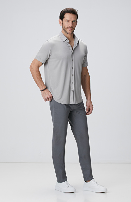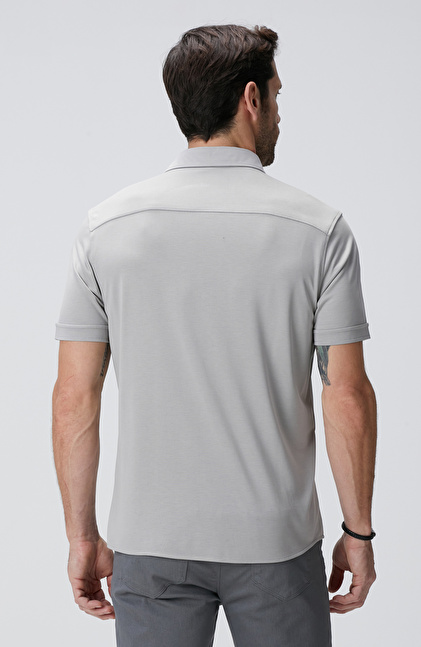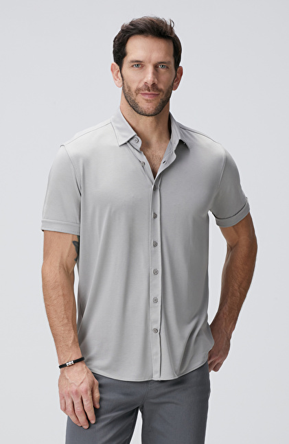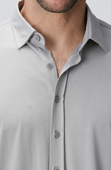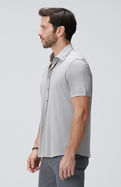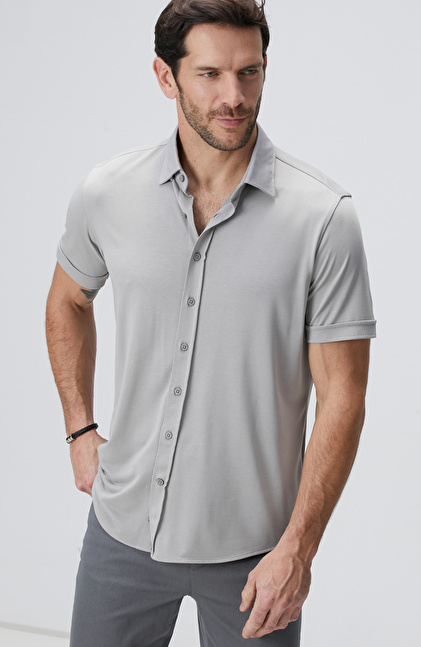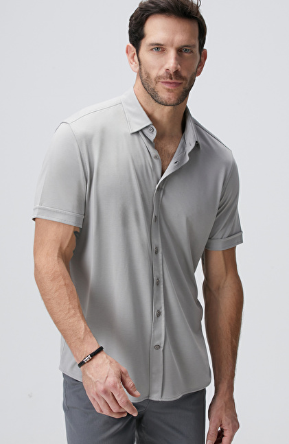 Comfort Fit; Klasik Yaka; Kısa Kol; Örme Gömlek; Düz Renk; Cepsiz