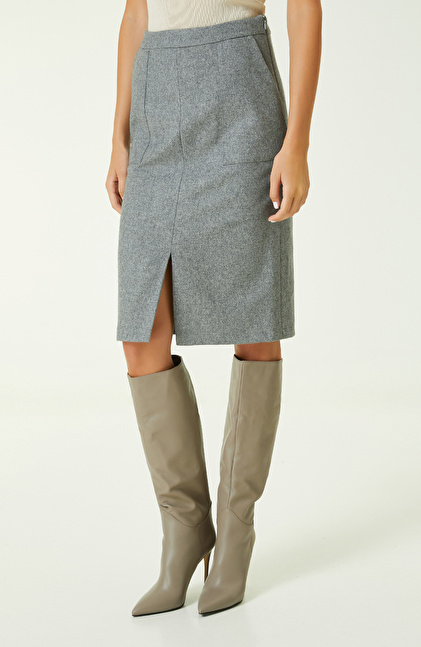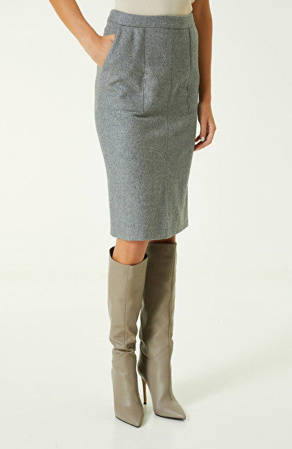 NetWork’ün Business koleksiyonunda yer alan Gri Kalem Etek, cesur ve stil sahibi kadınların favorisidir. Slim fit kalıp ve yüksek bel kesim ile tamamlanan etek, sonbahar/kış gardırobunun zamansız parçalarından biridir. Diz boyu ile günlük kombinlerde elegan ve göz alıcı bir şıklık kazandırır. Kalem formlu etek, vücuda rahatça oturur. Stiletto ve uzun çizmeler ile benzersiz bir uyum yakalayan şık parça, önde yer alan yırtmaç detayı ile modern bir görünüm yaratır. Siz de gri eteği kombinlerken; ekru askılı bluz, vizon kemerli manto, gri deri çizme, siyah omuz çantası ve gümüş tonlarında takılar kullanabilirsiniz.
