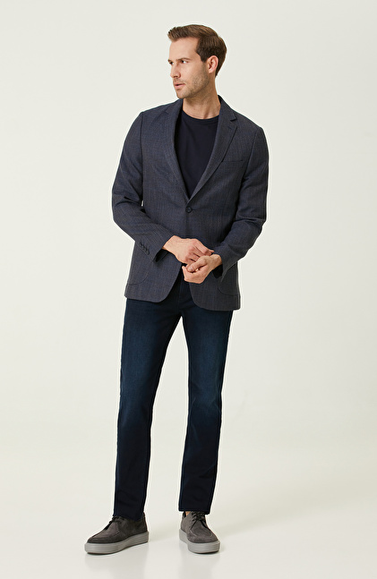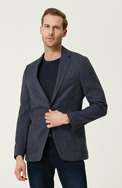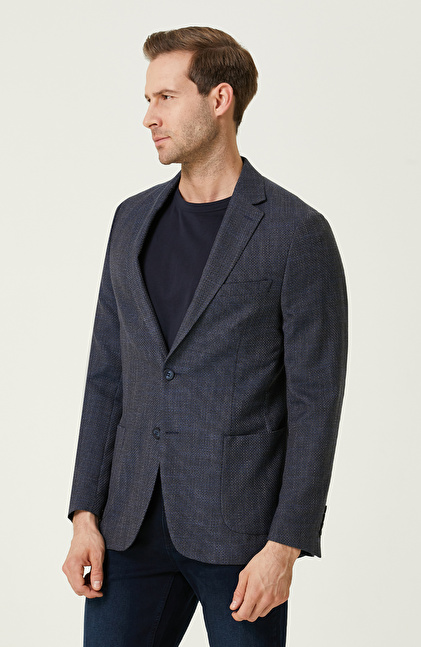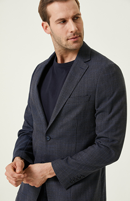 Gri Lacivert Armürlü Ceket