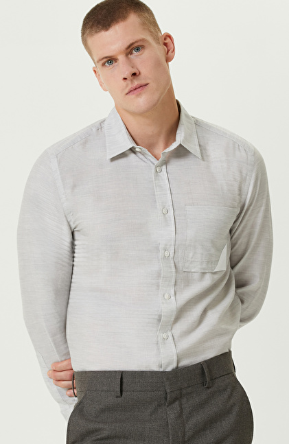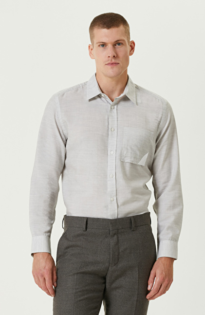 Gri Melanj Comfort Fit Cepli Gömlek