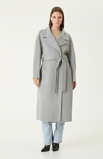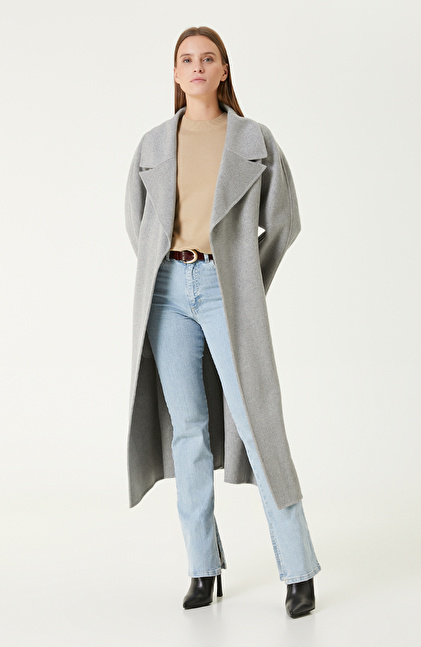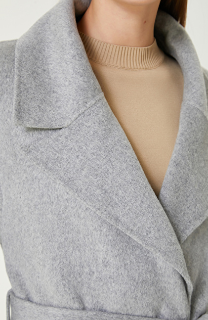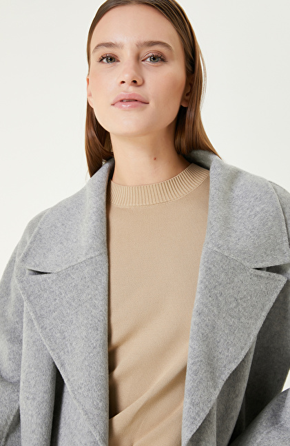 Gri Melanj Dikişsiz Handmade Yün Manto