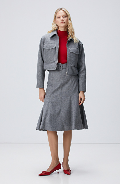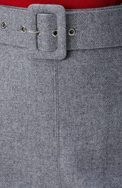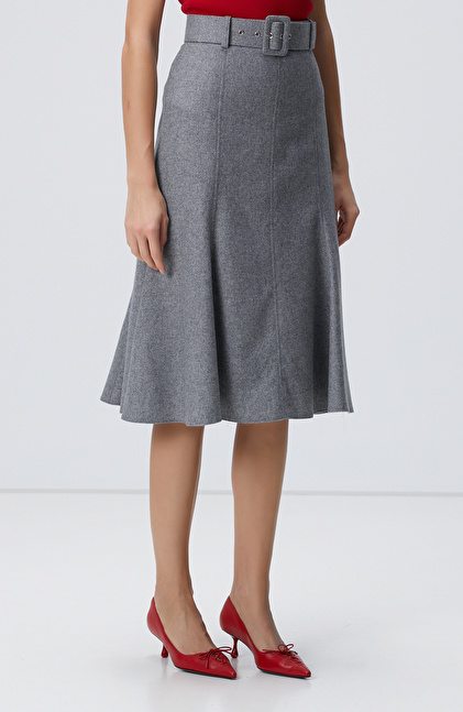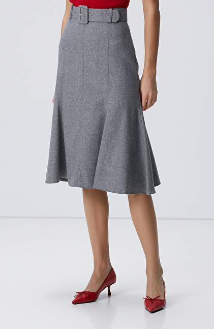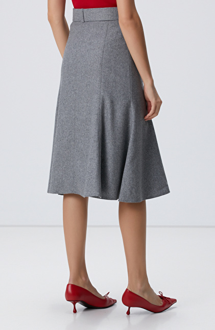 Gri Melanj Midi Yün Etek