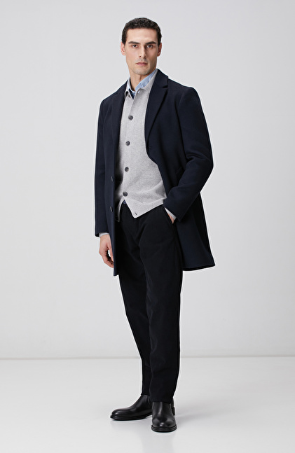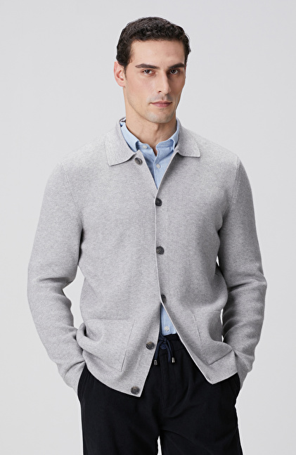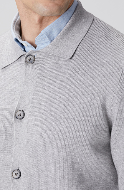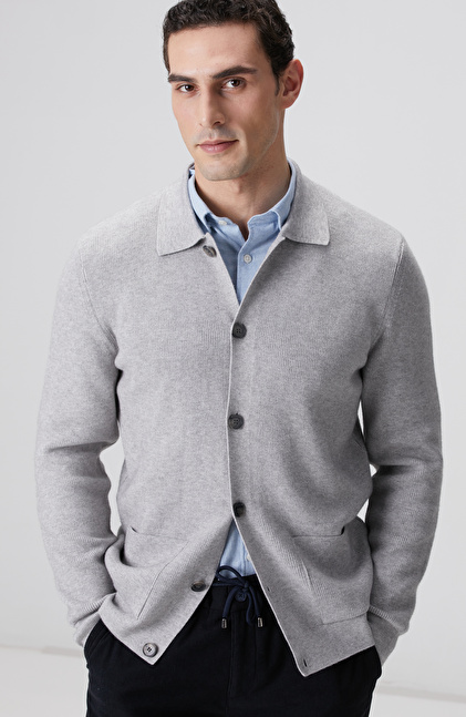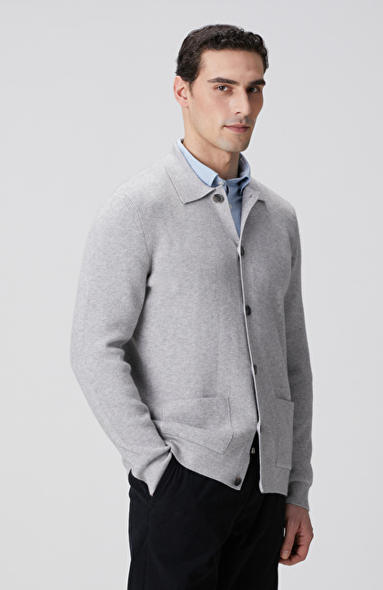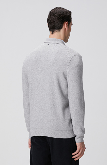 Gri Melanj Polo Yaka Cepli Triko Hırka