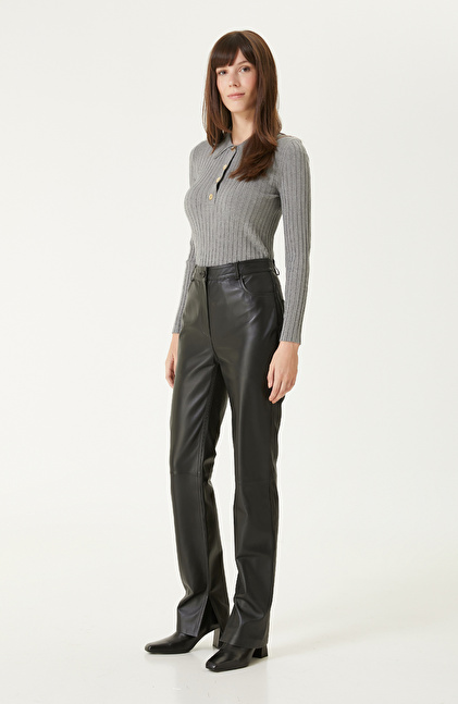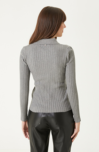 Gri Melanj Polo Yaka Triko Kazak