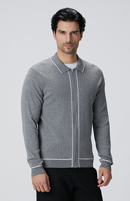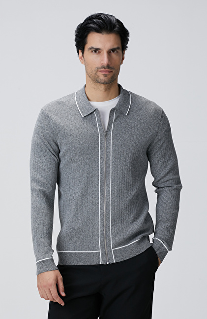 NETWORK Smart Casual Gri Melanj Rayon Fermuarlı Hırka