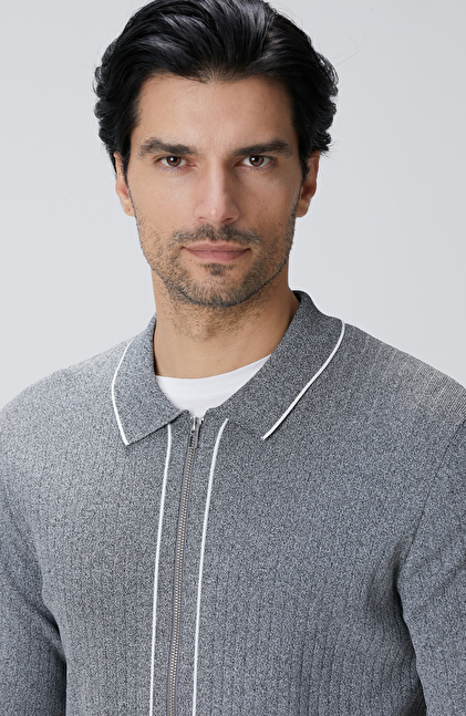 Gri Melanj Rayon Fermuarlı Hırka