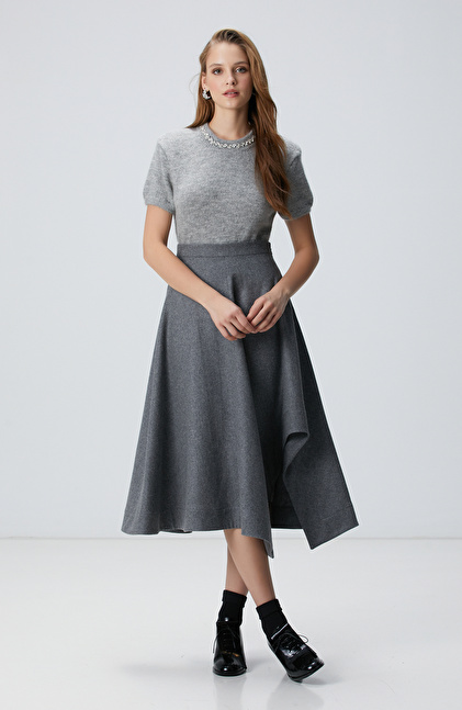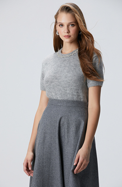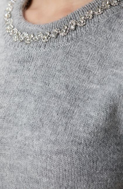 NETWORK Smart Casual Gri Melanj Yakası Taşlı Kazak