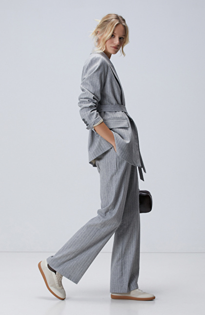 Gri Melanj Yün Karışımlı Blazer Ceket