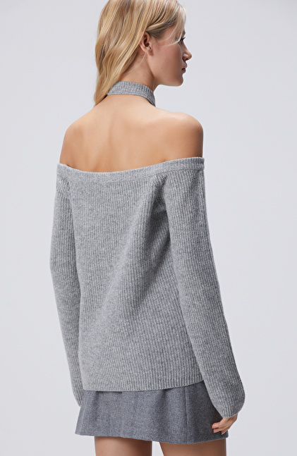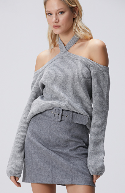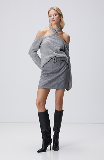 Gri Melanj Yün Karışımlı Kazak