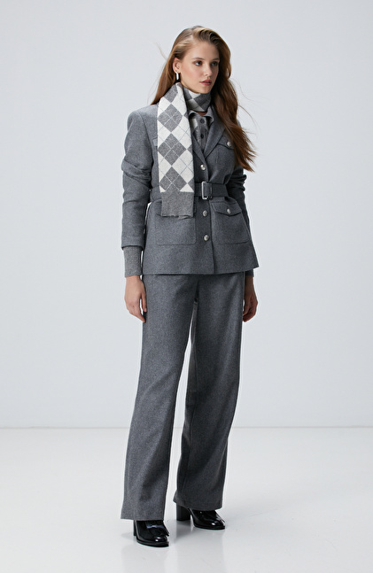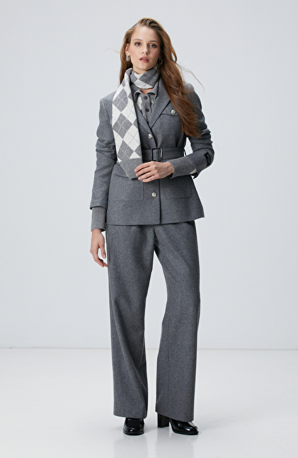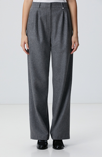 Gri Melanj Yün Karışımlı Pantolon