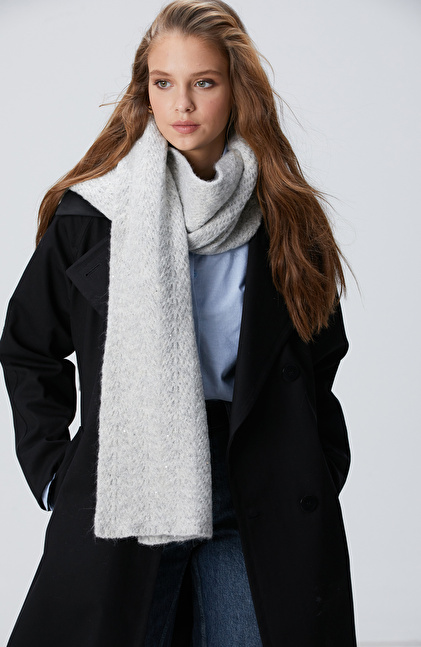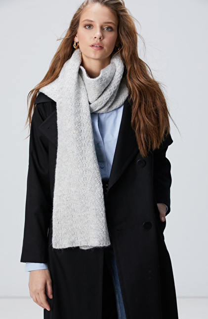 Gri Siyah Beyaz Yün Karışımlı Atkı
