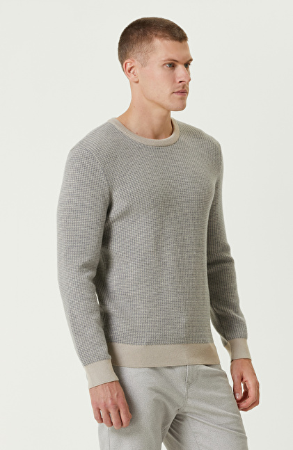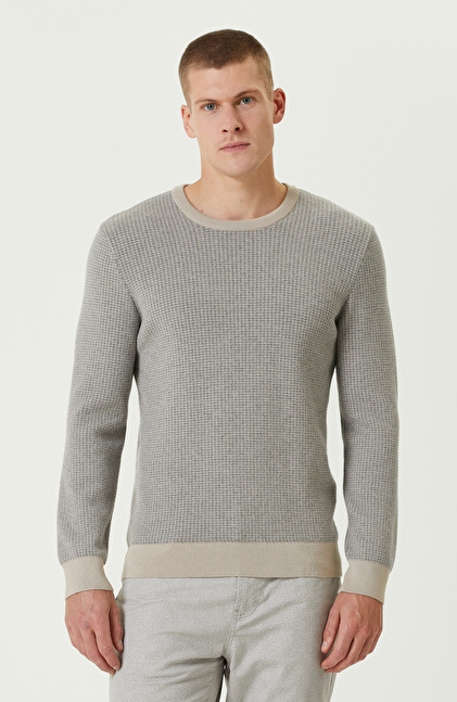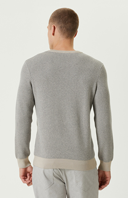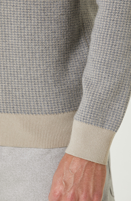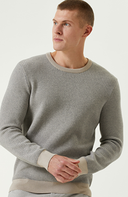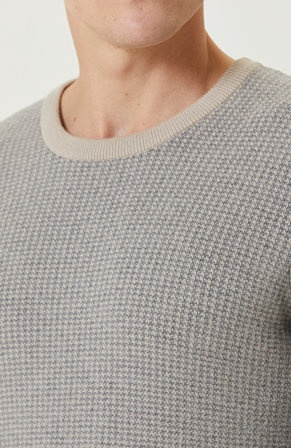 Slim Fit; Bisiklet Yaka; Kazayağı Desenli; Triko Kazak