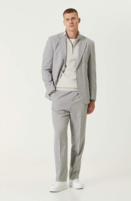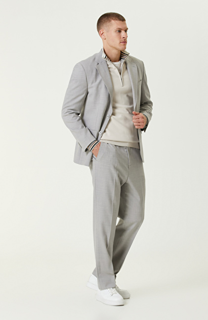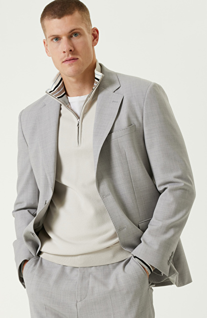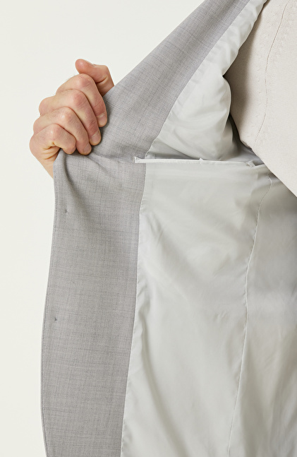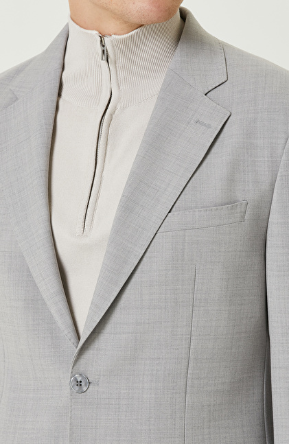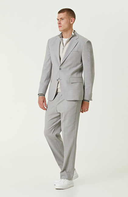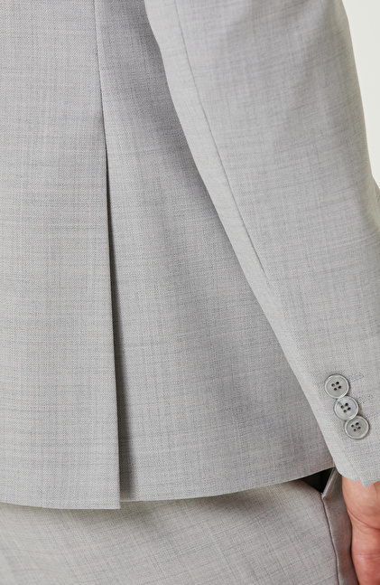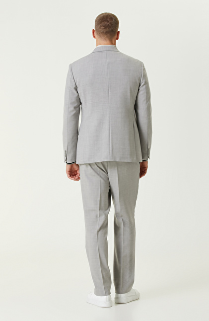Gri Yün Karışımlı Çift Yırtmaç Takım Elbise
