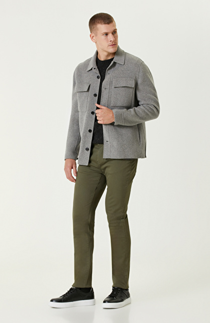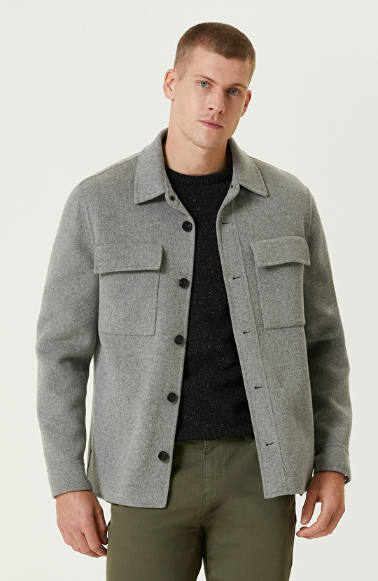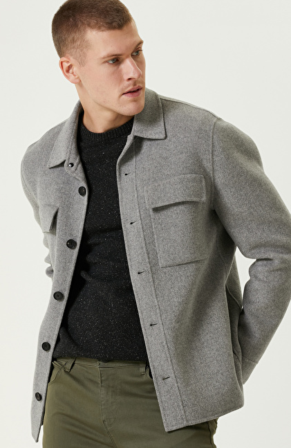Gri Yün Karışımlı Dikişsiz Handmade Mont