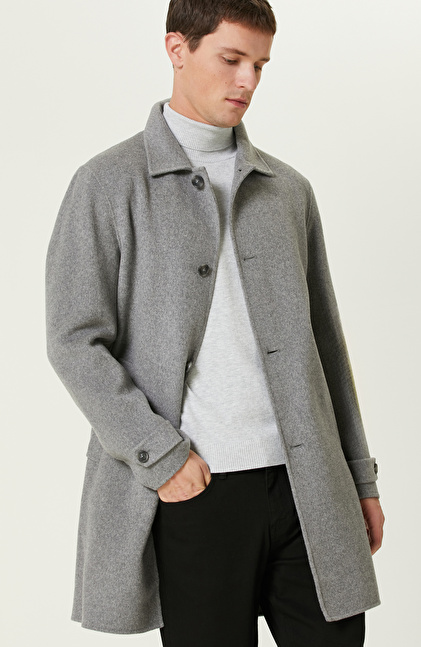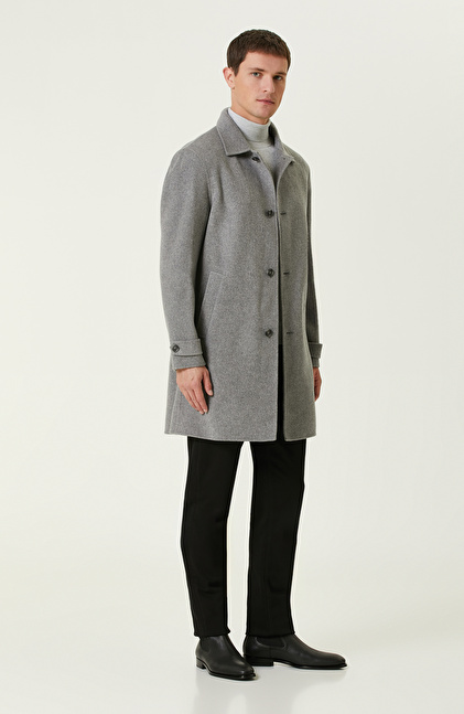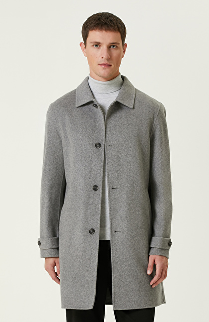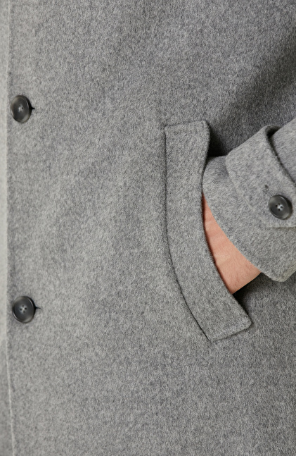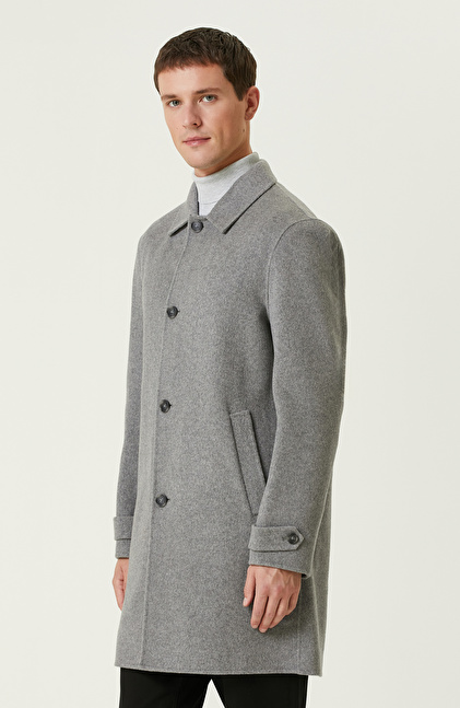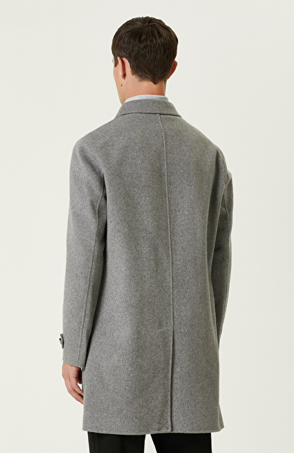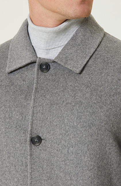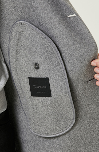 Gri Yün Karışımlı Dikişsiz Handmade Palto