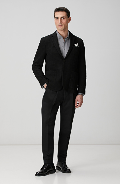 Comfort Fit; Alttan Britli Yaka; Diyagonal Desenli; Yün Karışımlı Gömlek