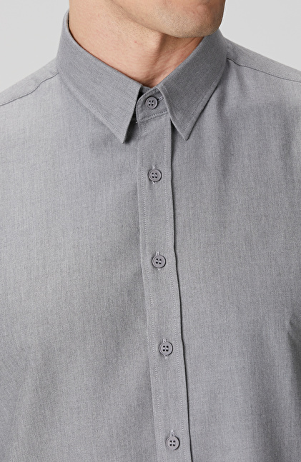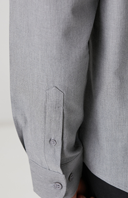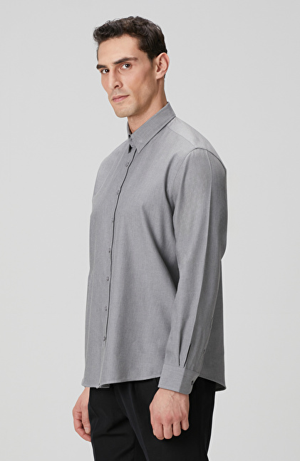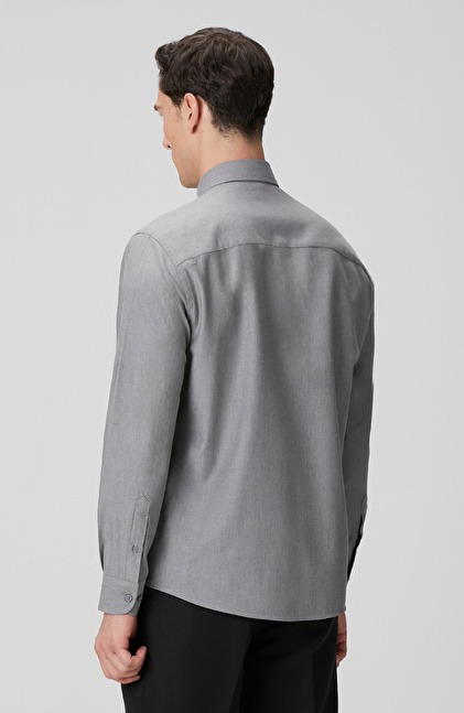 Gri Yün Karışımlı Gömlek