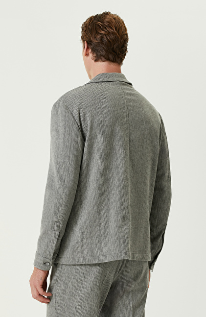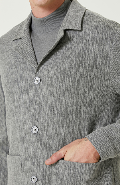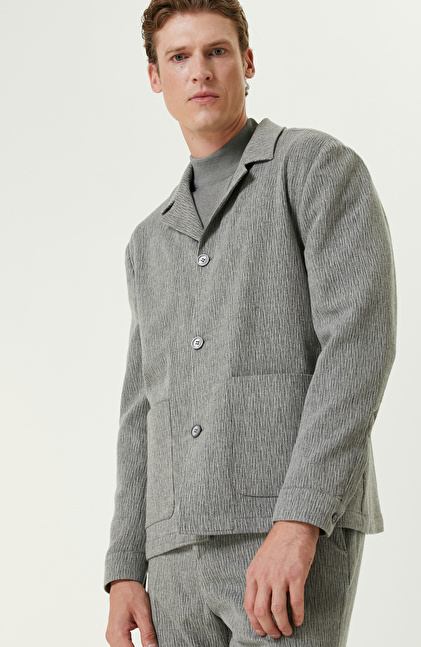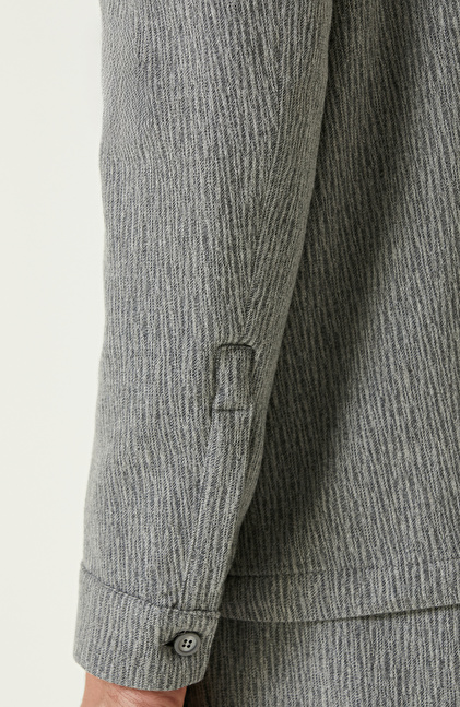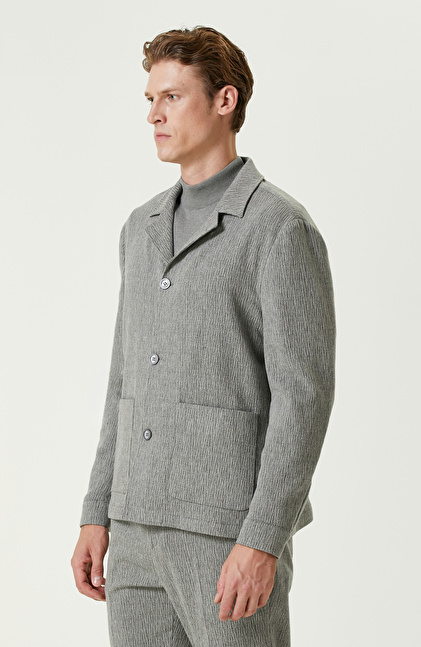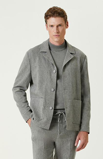 Gri Yün Kaşmir Karışımlı Jakarlı Ceket