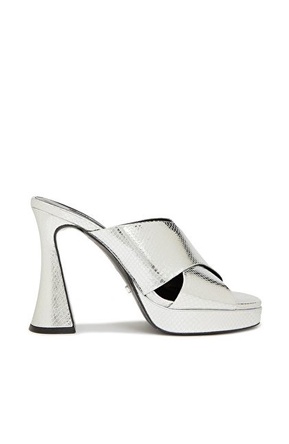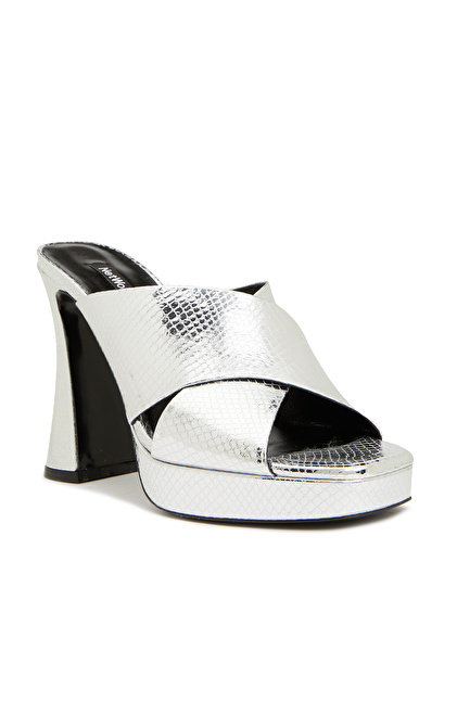 Gümüş Rengi Kadın Deri Terlik