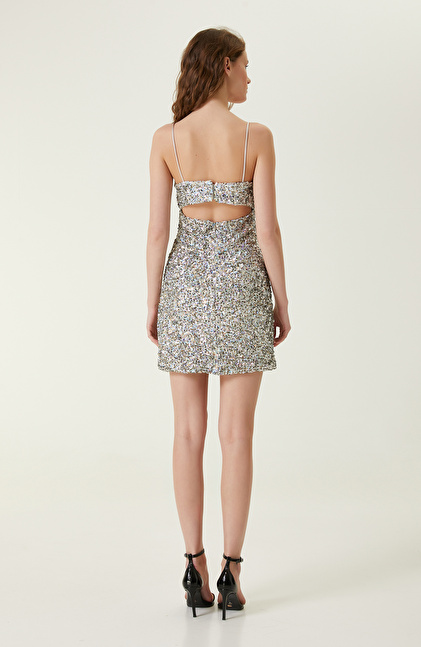NETWORK BLACK Gümüş Rengi Payetli Mini Abiye Elbise