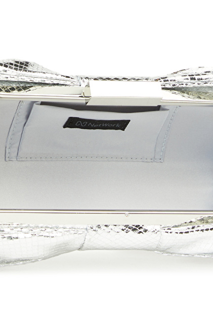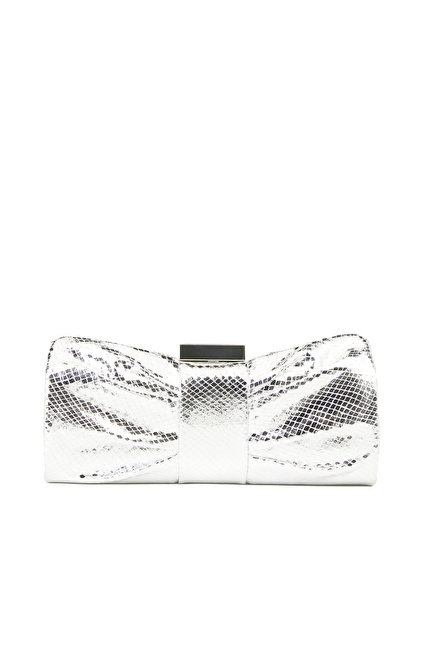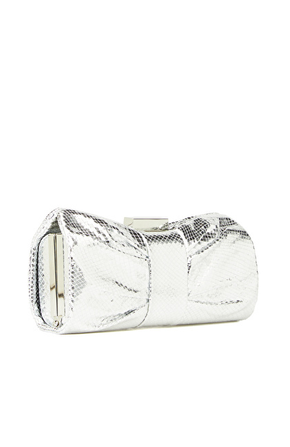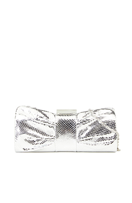 Gümüş Yılan Baskılı Kadın Clutch