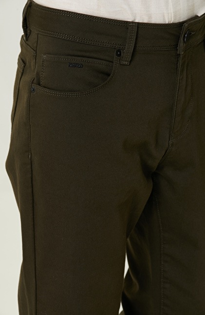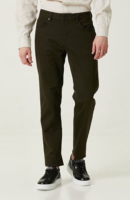 Archi Minimal serisinin dikkat çekici parçalarından biri olan Haki 5 Cepli Pantolon, NetWork'ün karakteristik tarzını yansıtarak metropol erkeklerine zamansız ve şık bir seçenek sunar. Rahat slim fit kesimi ve normal bel yapısı, çeşitli vücut tiplerine uyum sağlarken düz paça tasarımı farklı ayakkabı modelleriyle kombinleme imkanı tanır. Beş cep detayı ise işlevsel kullanım ve casual görünüm açısından idealdir. Haki rengi sayesinde hem günlük hem de özel kombinlerde kullanılan pantolon ayrıca ofis görünümleri için vazgeçilmezdir. Bu etkileyici parçayı sade beyaz gömlek, deri ceket, spor ayakkabılar ve metal aksesuarlarla tamamlayarak kendi tarzınızı kış aylarında da yansıtmaya devam edebilirsiniz.