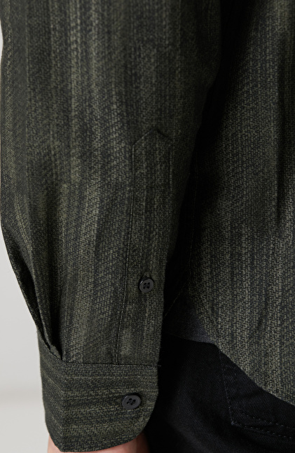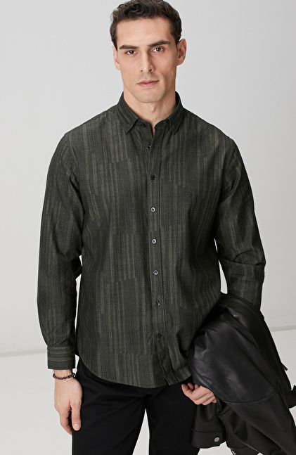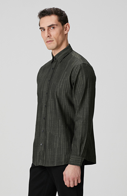 Comfort Fit; Alttan Britli Yaka; Baskılı; Çıtçıtlı Gömlek; Uzun Kol; Cepsiz
