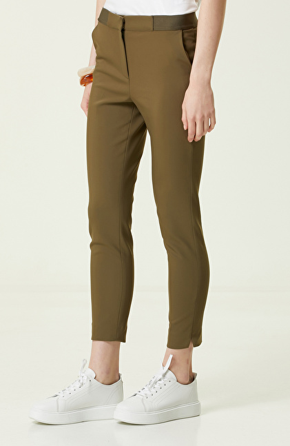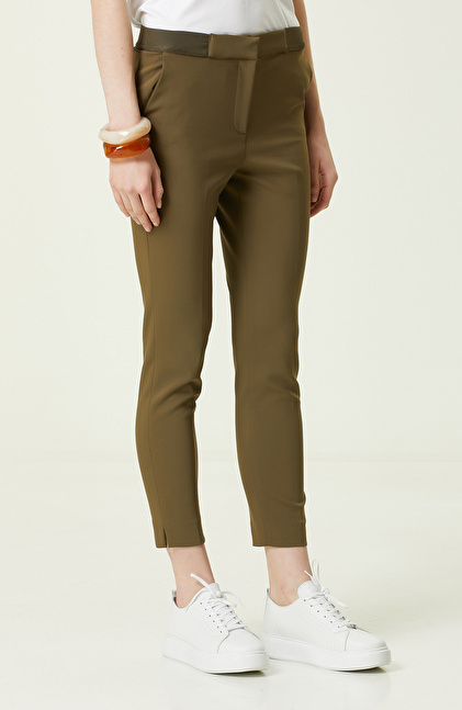 Haki Beli Lastikli Dar Paça Pantolon