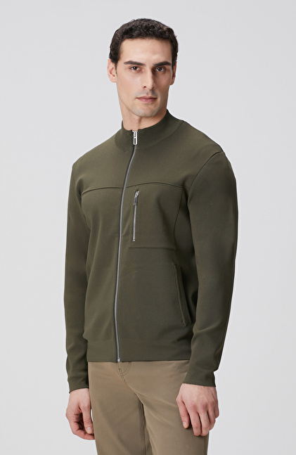 Haki Cep Detaylı Triko Mont