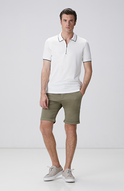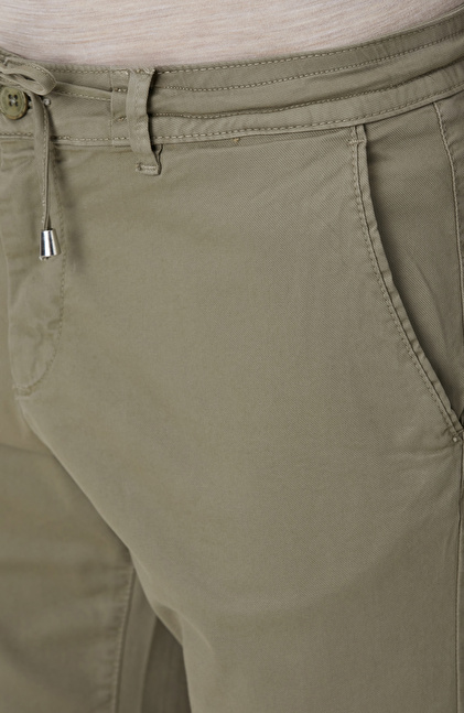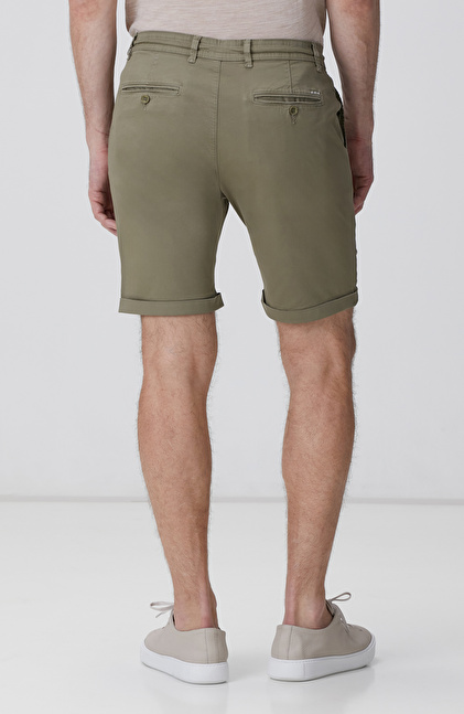Slim Fit; Lastikli Orta Bel; Chino Şort; Yan Cepli