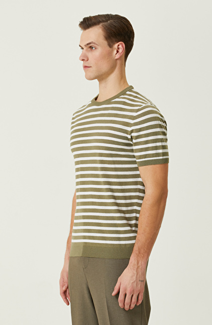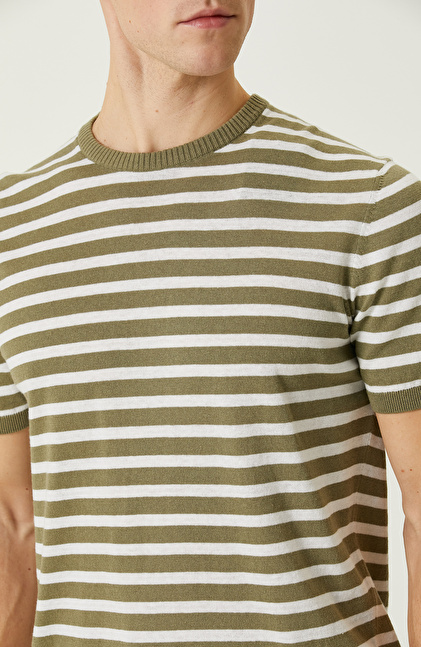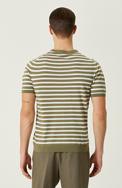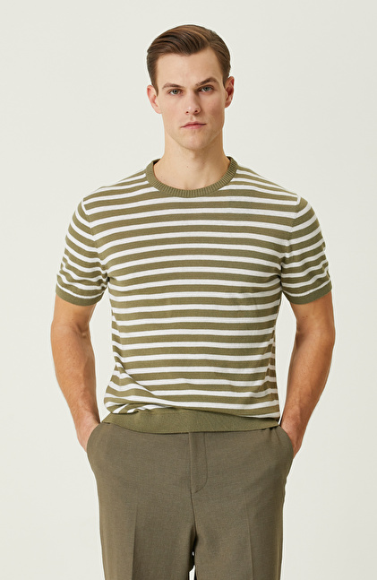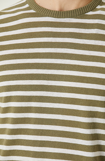 Slim Fit; Bisiklet Yaka; Kısa Kol; Çizgi Desenli Triko Kazak