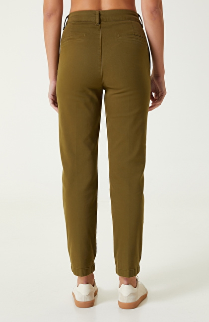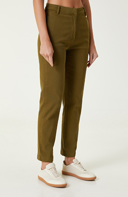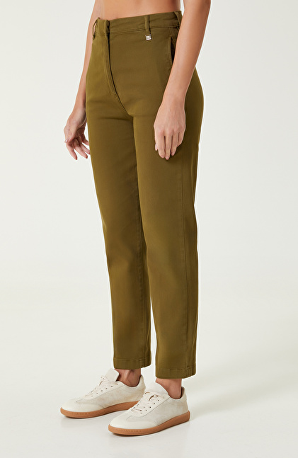 Straight Fit; Normal Bel; Ütü İzli; Crop Casual Pantolon; Düz Renk; Dar Paça