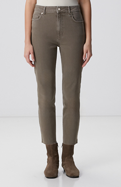 Slim Fit; Yüksek Bel; Düz Paça; Denim Pantolon; Cepli