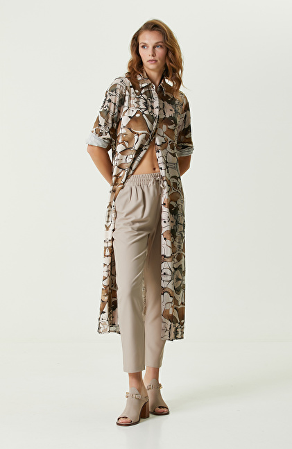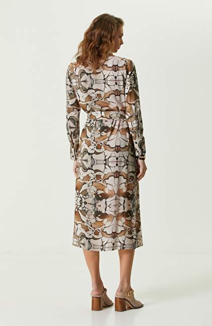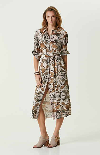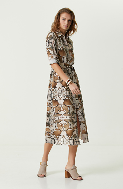 Birbirinden iddialı parçalarını ortaya koymaya devam eden NetWork’ün tasarladığı Haki Desenli Midi Boy Elbise, yaz sezonu kullanımı için idealdir. Gömlek yaka ve midi boy detayları ile hazırlanan elbise, kolsuz olarak tasarlanır. Basic fit kalıbıyla vücut üzerinde kusursuz bir duruş yakalayan parça, sıcak günlerde ekstra bir serinlik hissi yaratır. Kaliteli dokuma kumaştan elde edilen model, stil sahibi kadınların seçimidir. Tasarım, düğmeli ve kemerli detayı ile şıklığının yanına fonksiyonelliğini ekler. Desenli haki rengi ile günlük buluşmalar için ilham verici bir parçadır. Sosyal yaşamda aktif kadınlara hitap eden elbiseyi; nude tonlarında topuklu ayakkabı, altın renkli takılar ve ekru clutch ile kombinleyebilirsiniz.